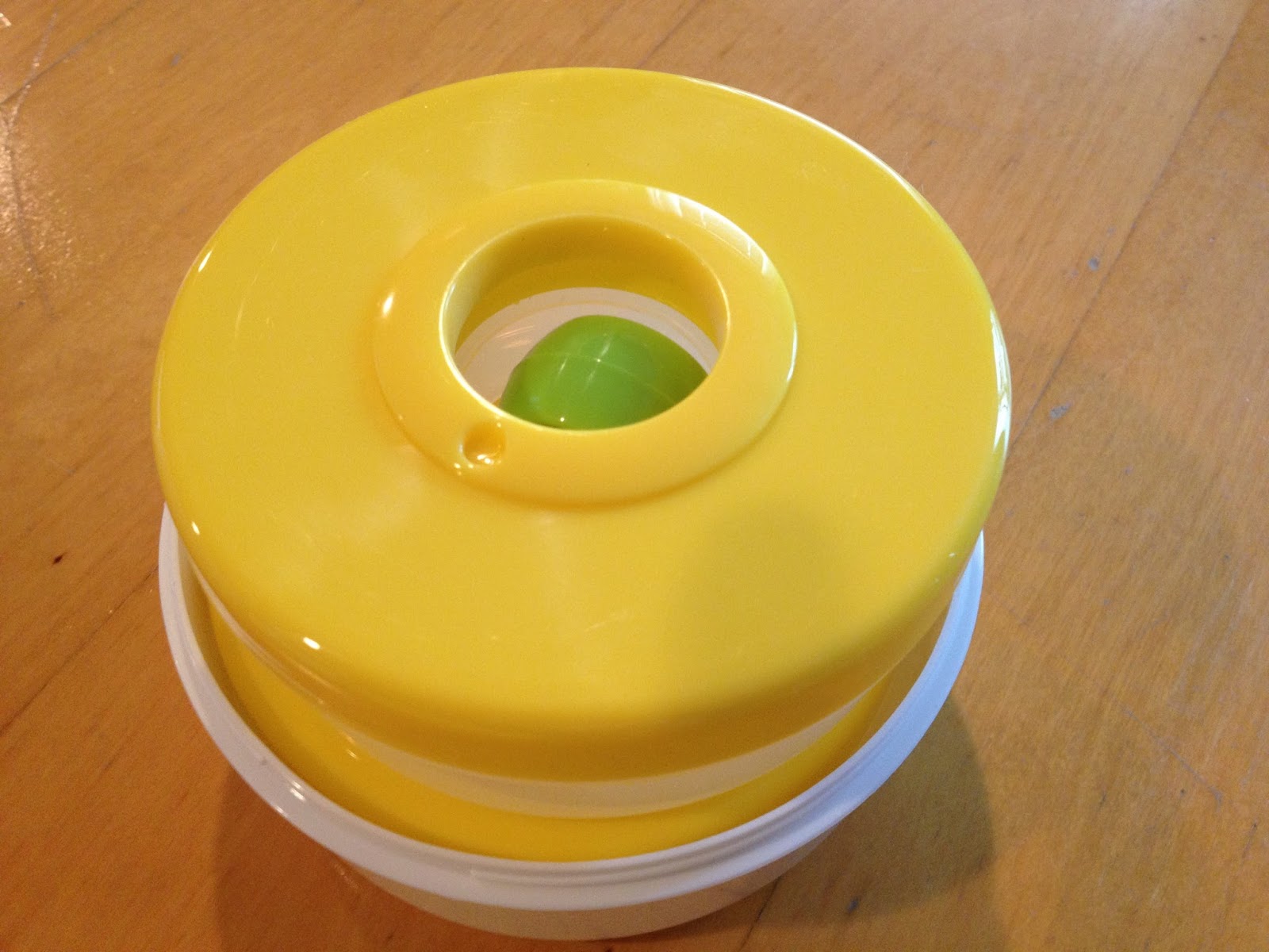 另外, 朋友也送一個Baby Brezza的嬰兒外帶便當盒/儲存盒, 也是BPA free, 綠色的是隨身湯匙, 像甜甜圈的盒蓋上面有個小圓洞, 裡面有數字, 可以轉到食物做的日期, 這樣就不會忘記食物是哪一天做的啦!