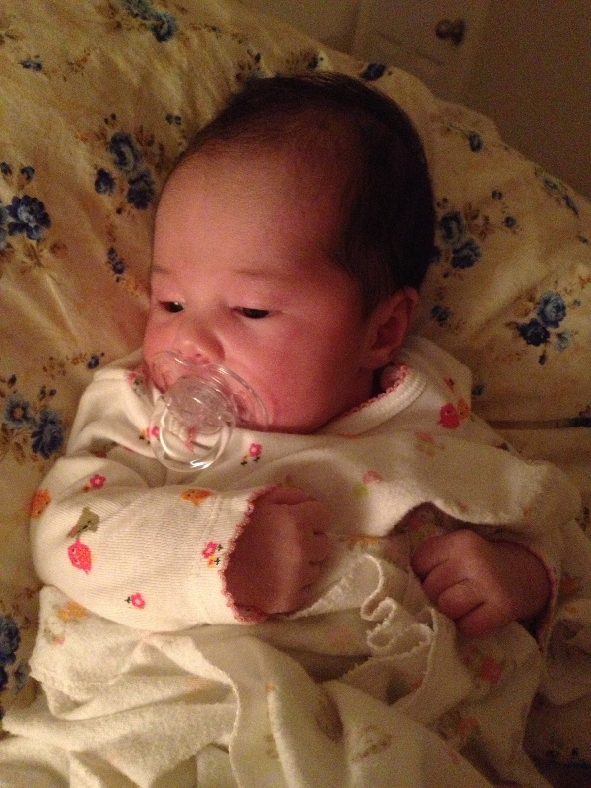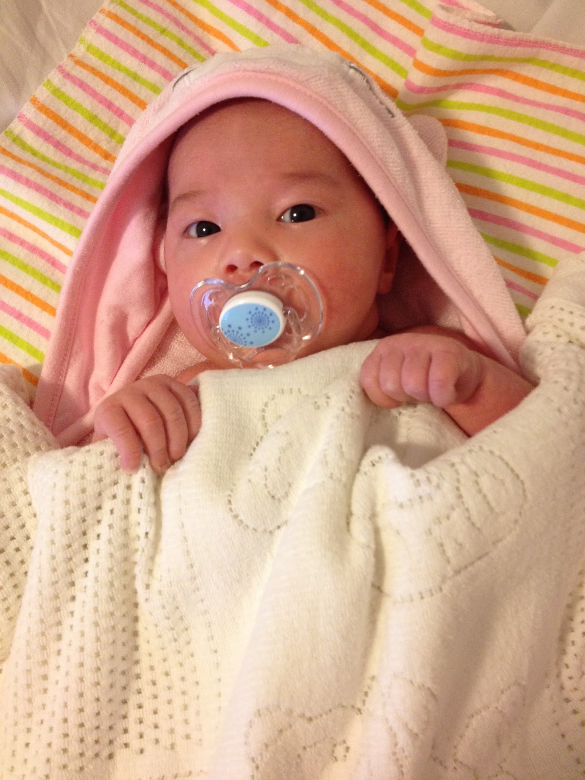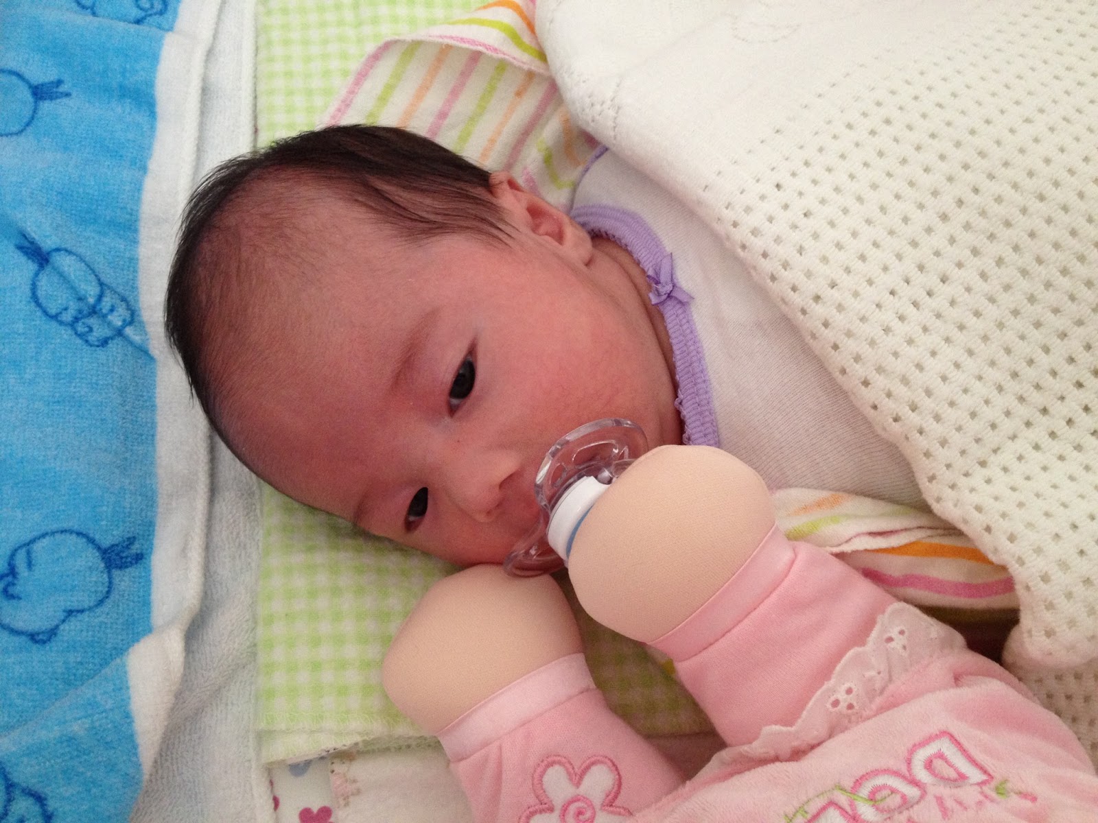 Day 30 (2/13) 阿嬤發明的, 用洋娃娃的腳塞住奶嘴, 眼睛還是杏仁眼
