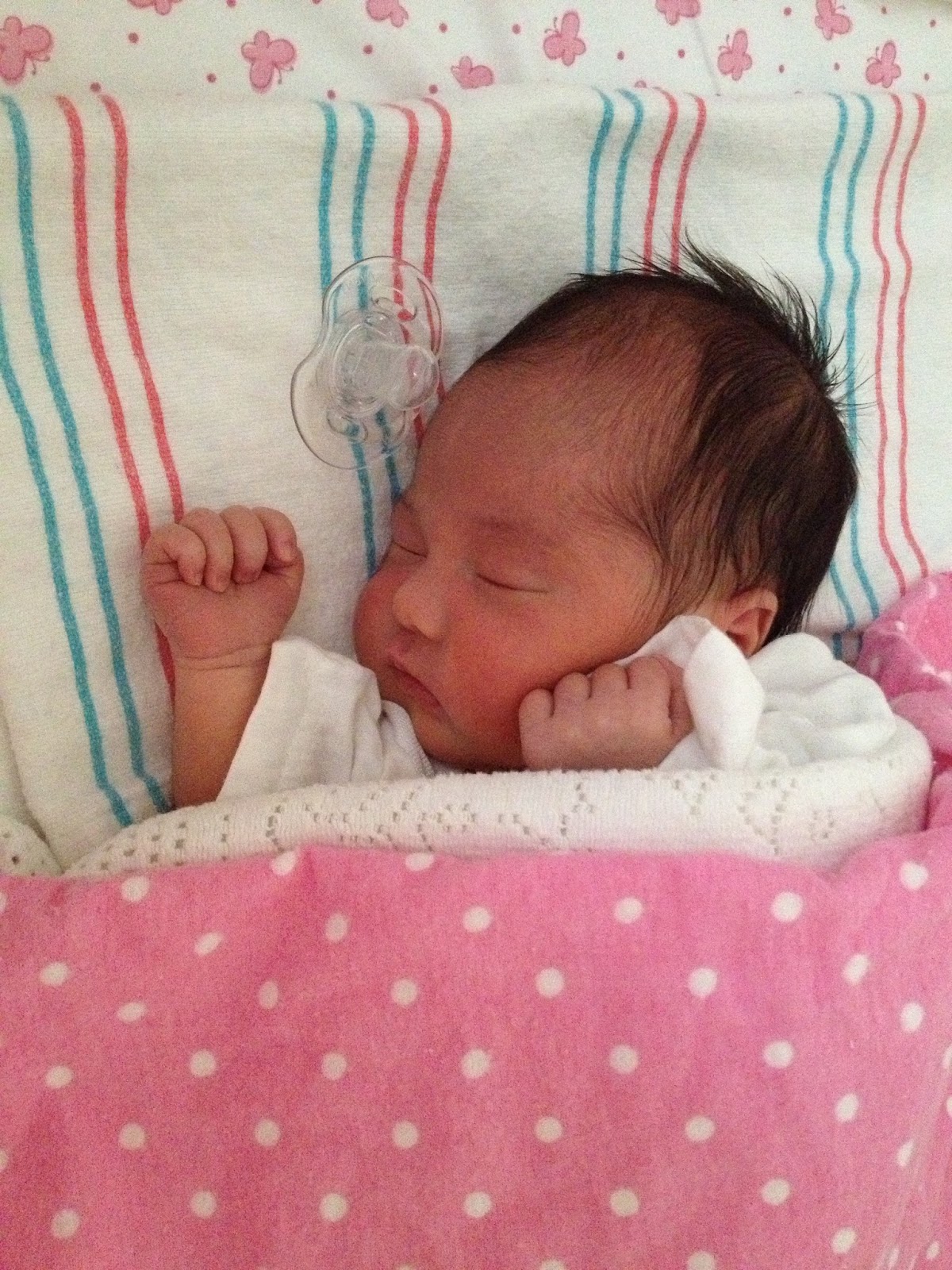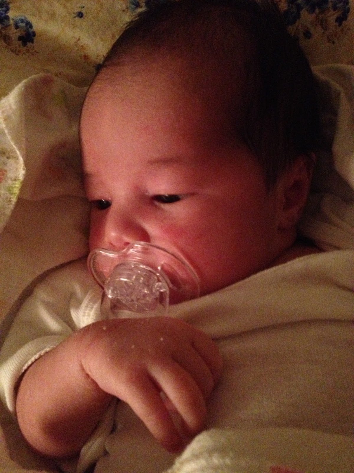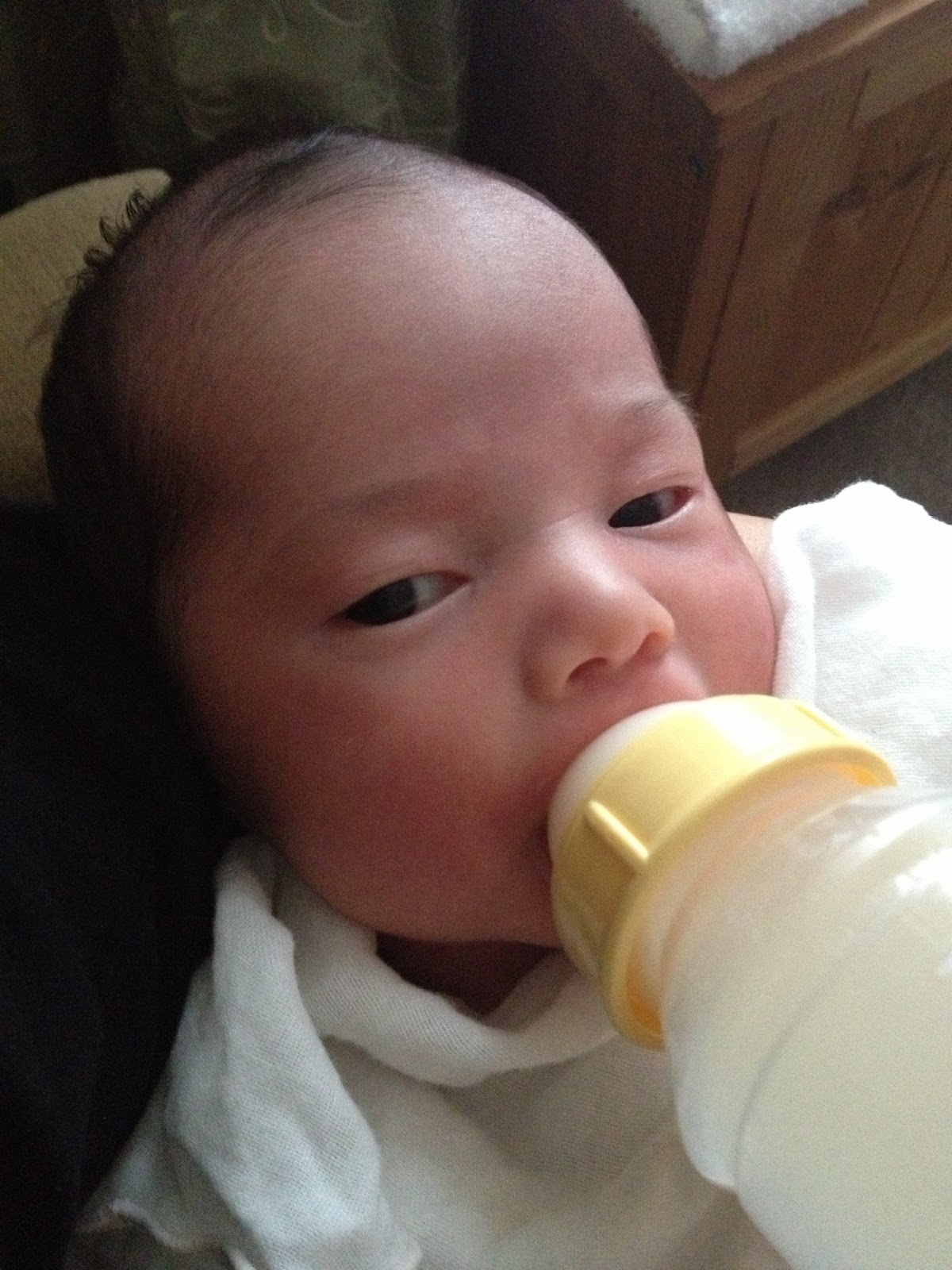 Day 30 (2/13) 阿嬤發明的, 用洋娃娃的腳塞住奶嘴, 眼睛還是杏仁眼