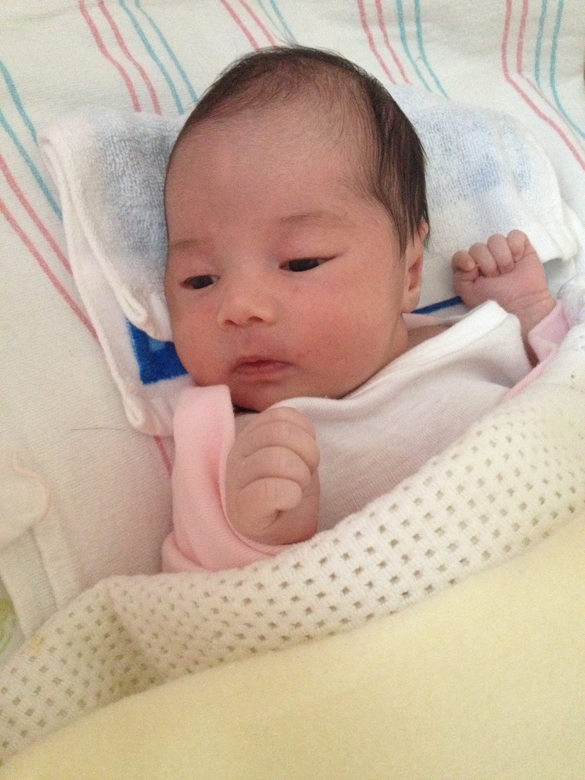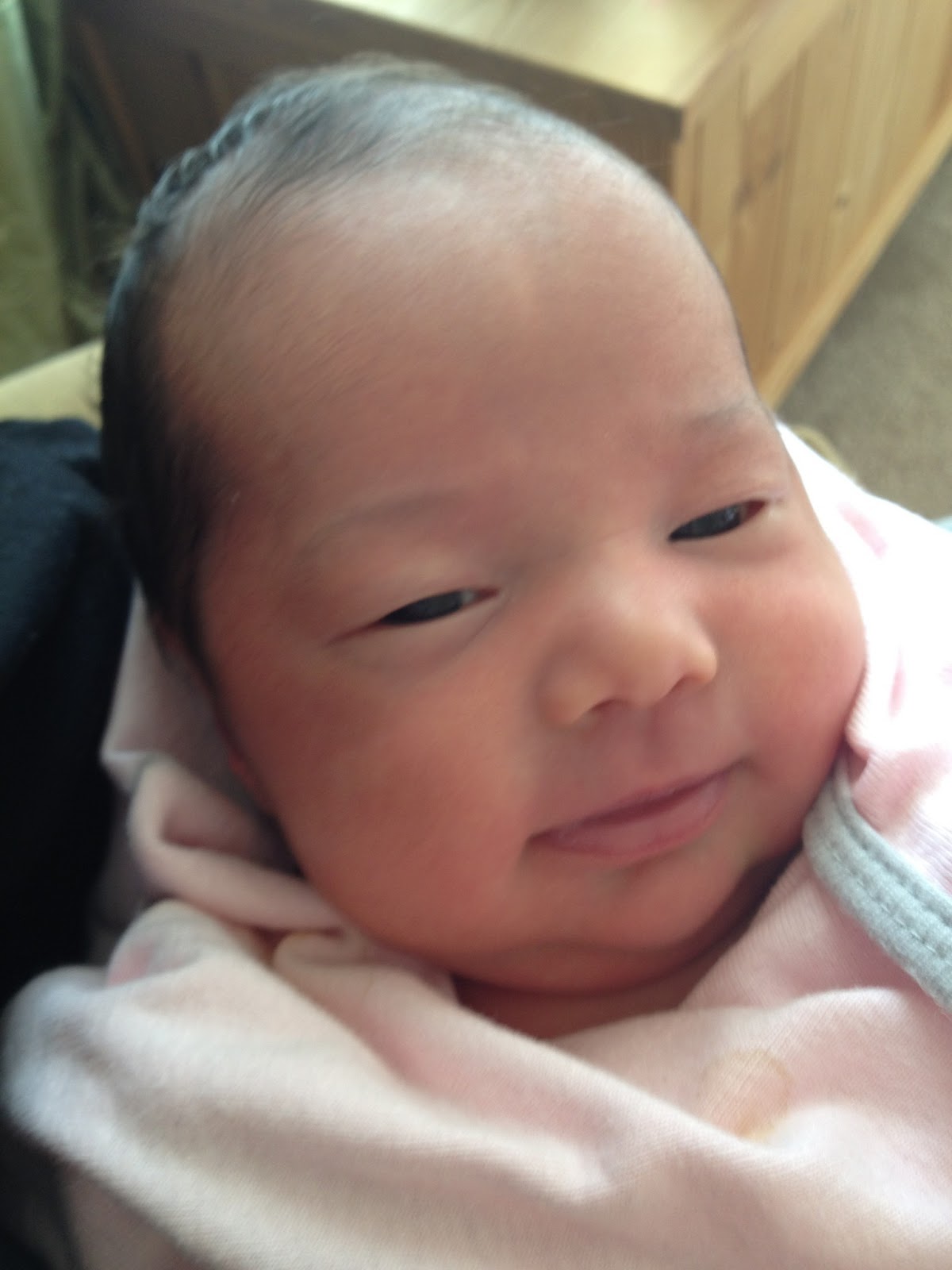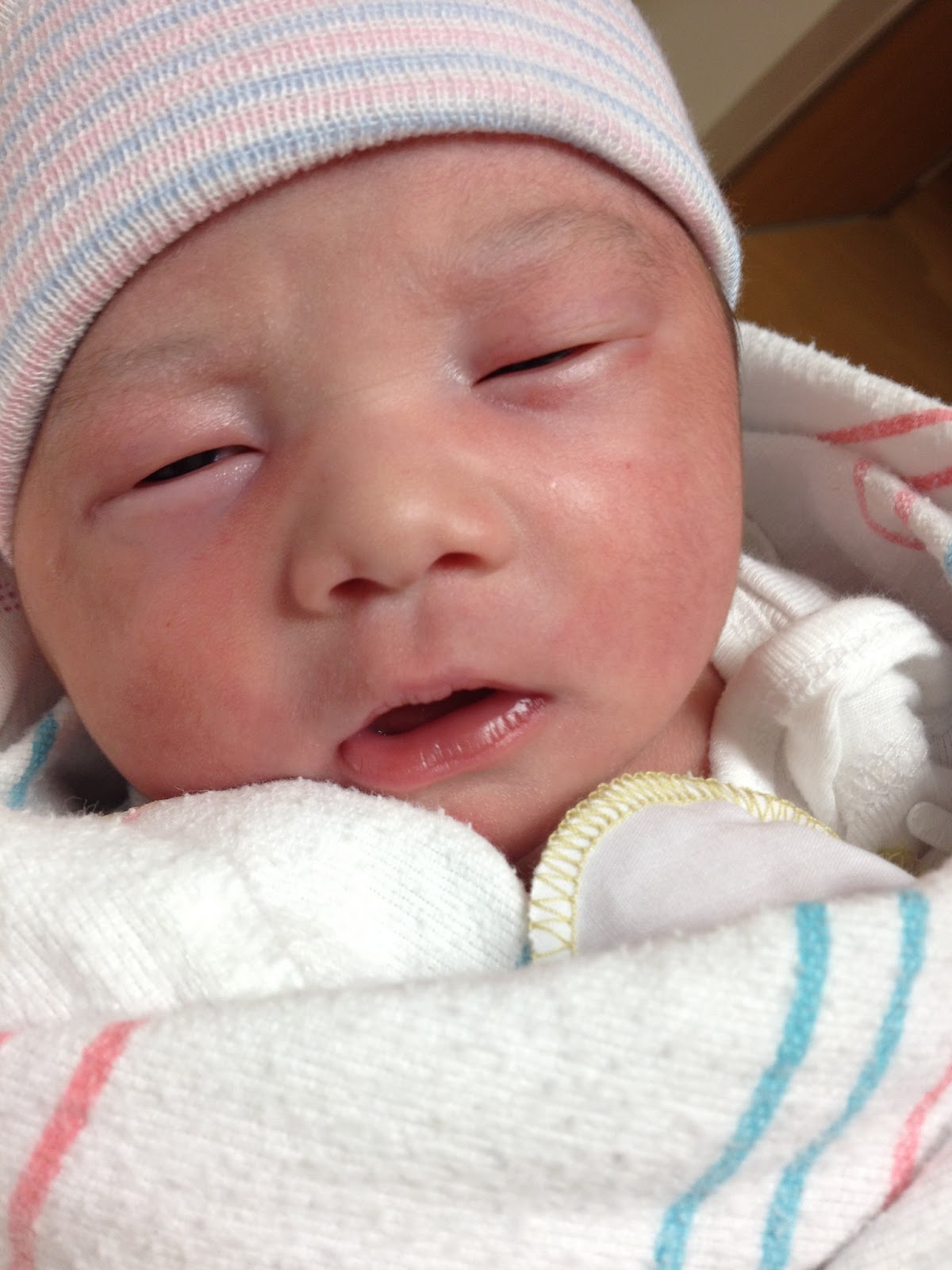 Day 2 (1/16) 眼睛張開不少, 兩頰忽然變成嘟嘟的哩?