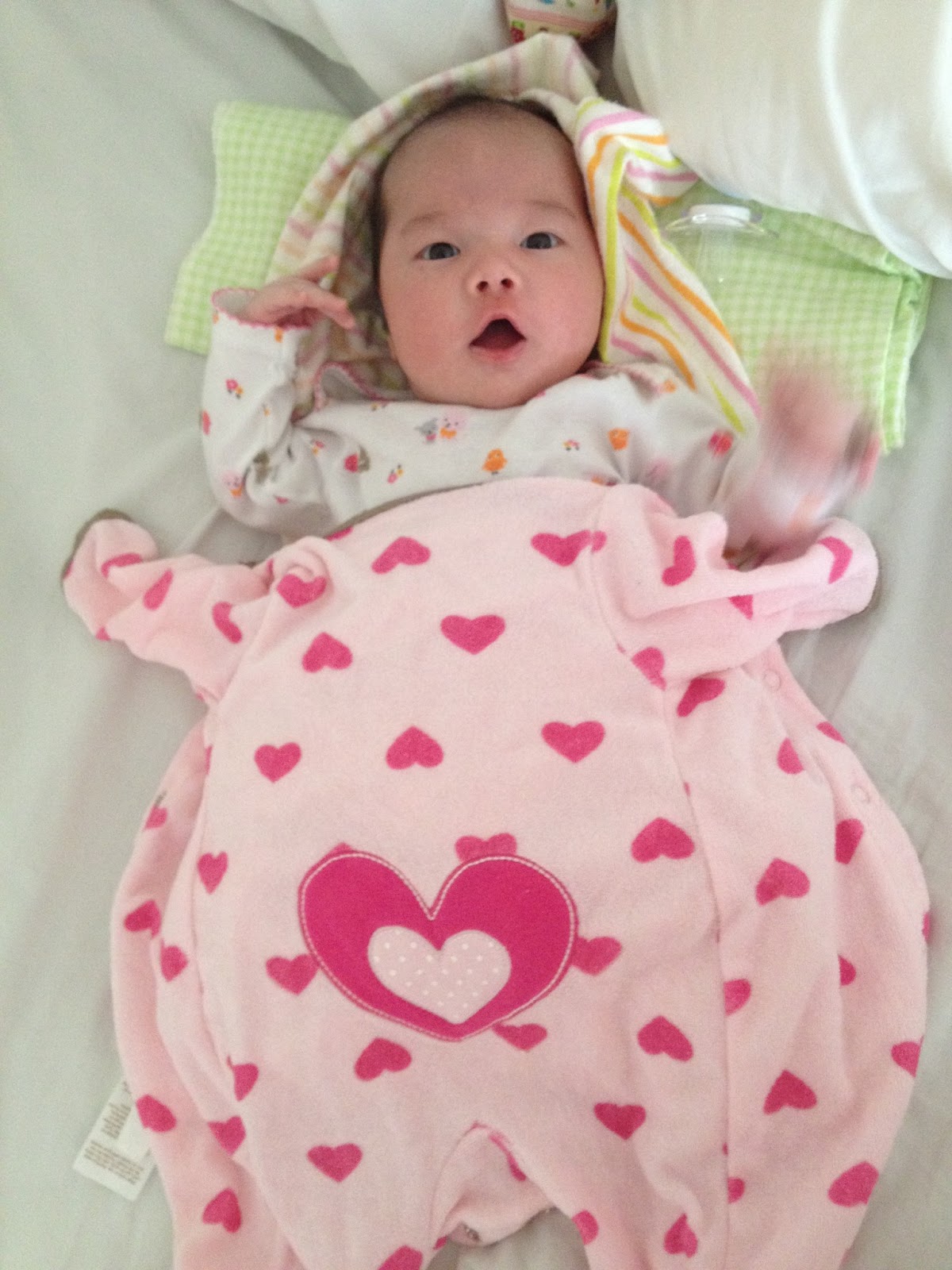 嬰兒出生到現在, 前面第一個月每天幾乎都長得不一樣, 從原來的瘦瘦小小嬰兒, 中間變形好幾回, 到現在總算比較"固定"的樣子啦!!