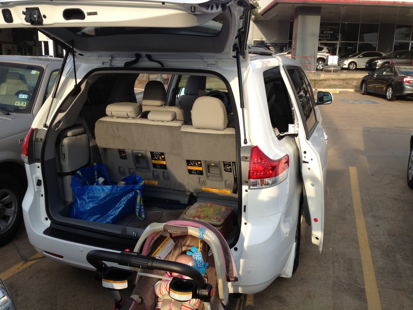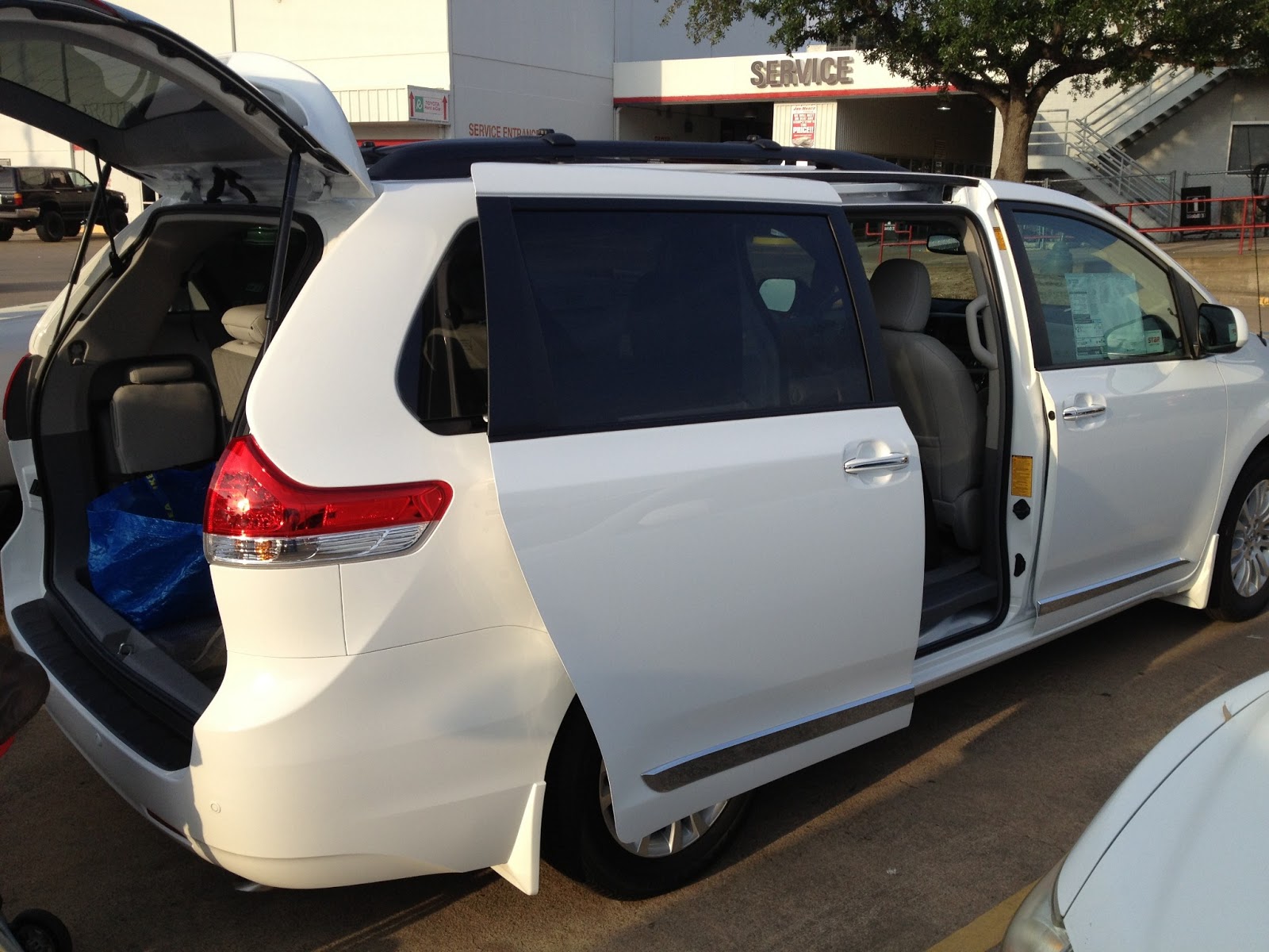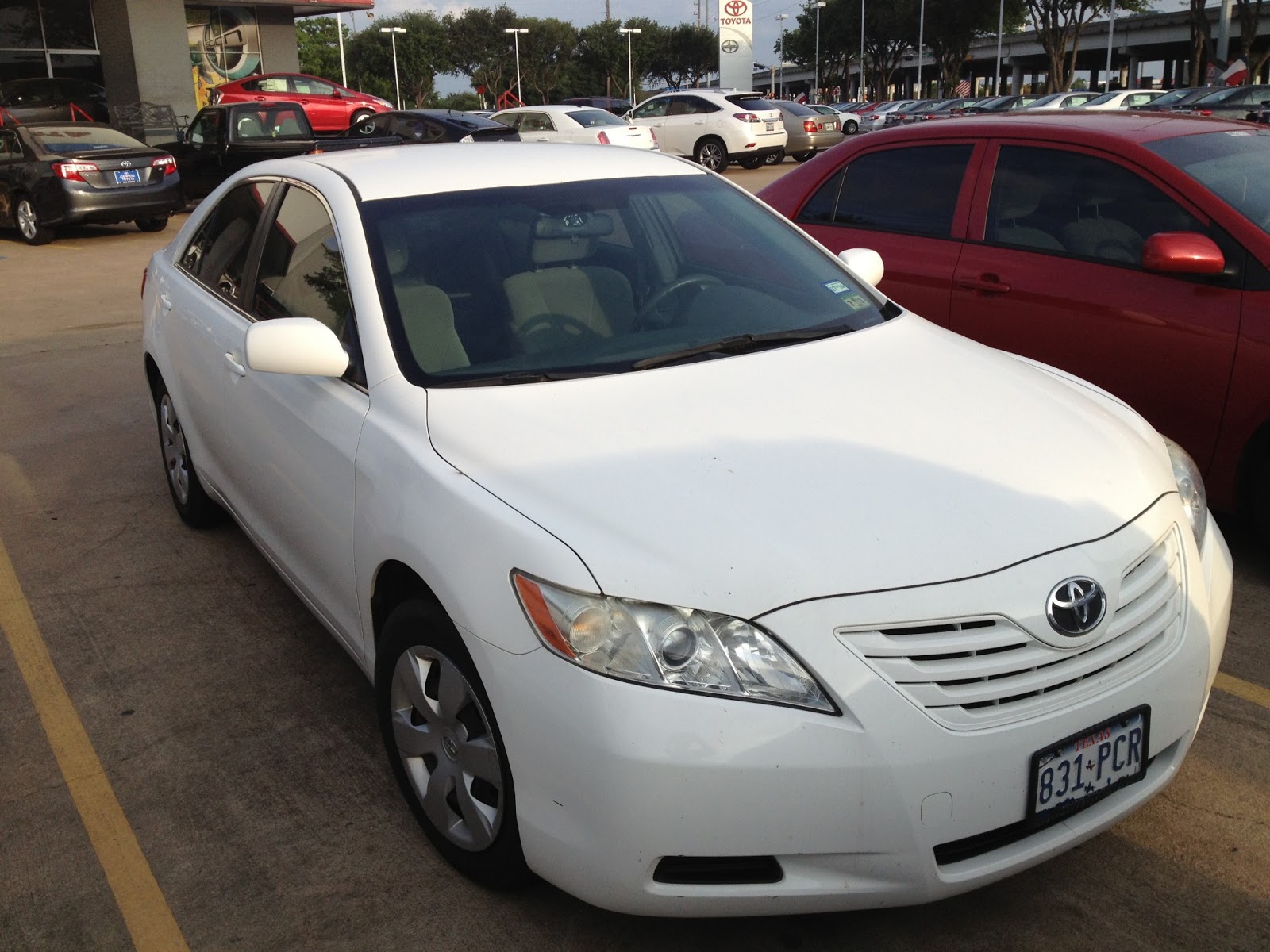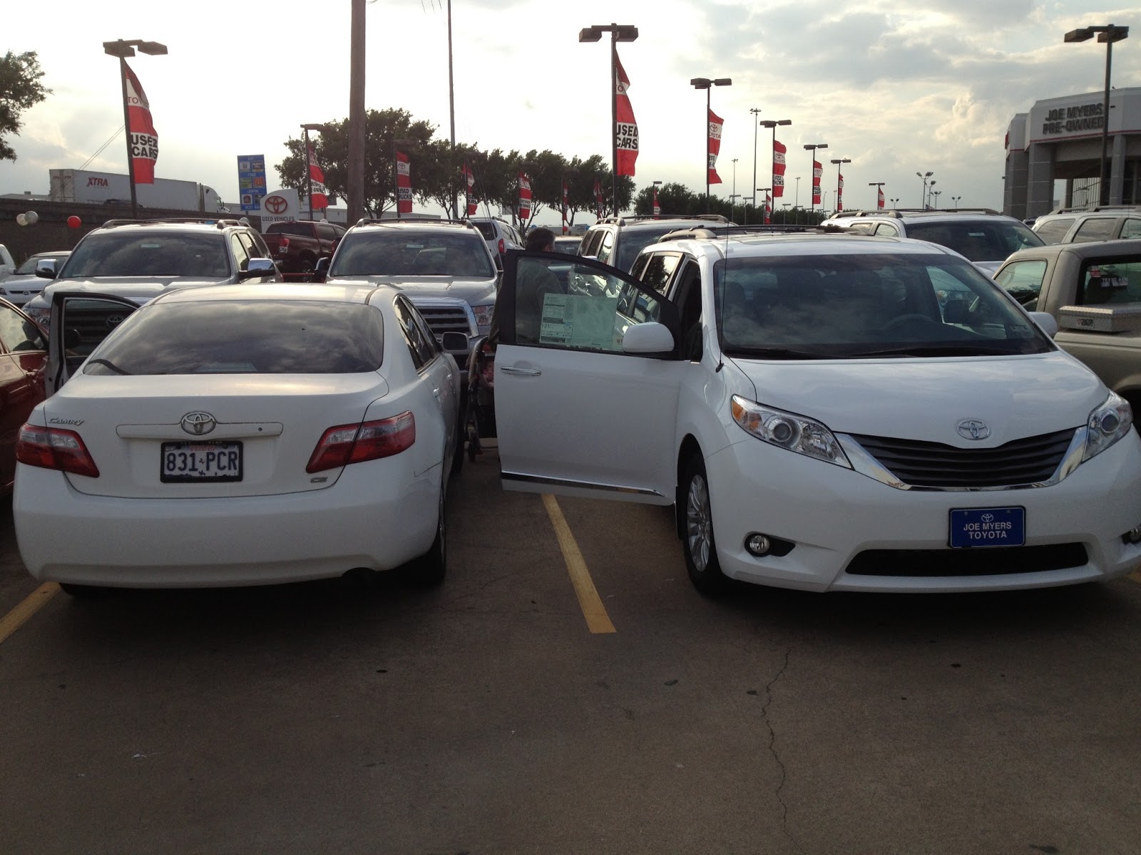 開了快七年的Camry, 賣回Toyota抵新車價, 傍晚五點大熊跟我在車廠會合, 簽了文件, 跟他們的finance guy把款付清後, 就出來把舊車上的東西移到新車上。