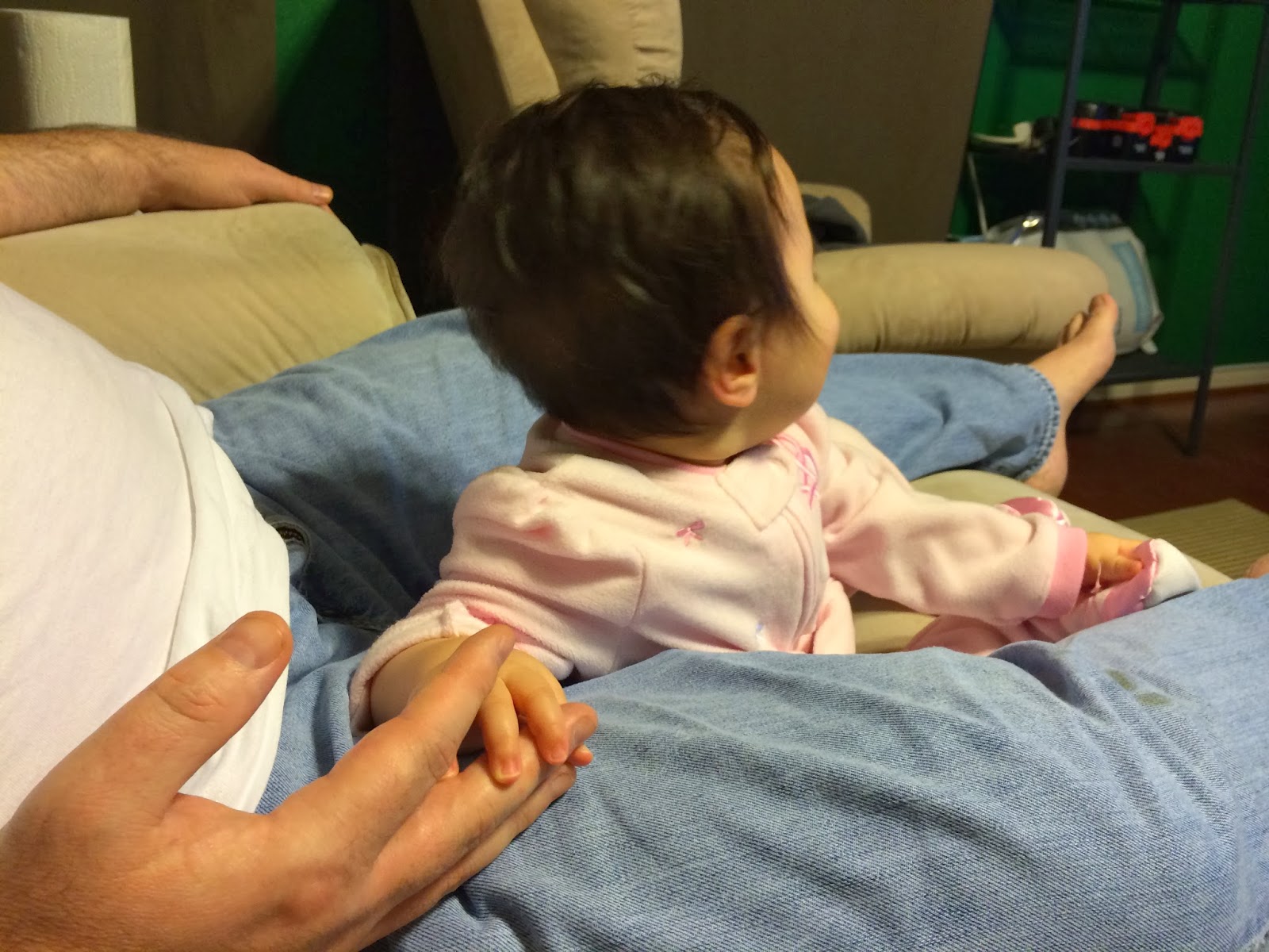 今天大熊下班比較早, 回到家吃飽飯給阿秋撒嬌, 阿秋即使看電視也要握著大熊的手指 (不過後來就拿起來想咬ㄧ咬...)