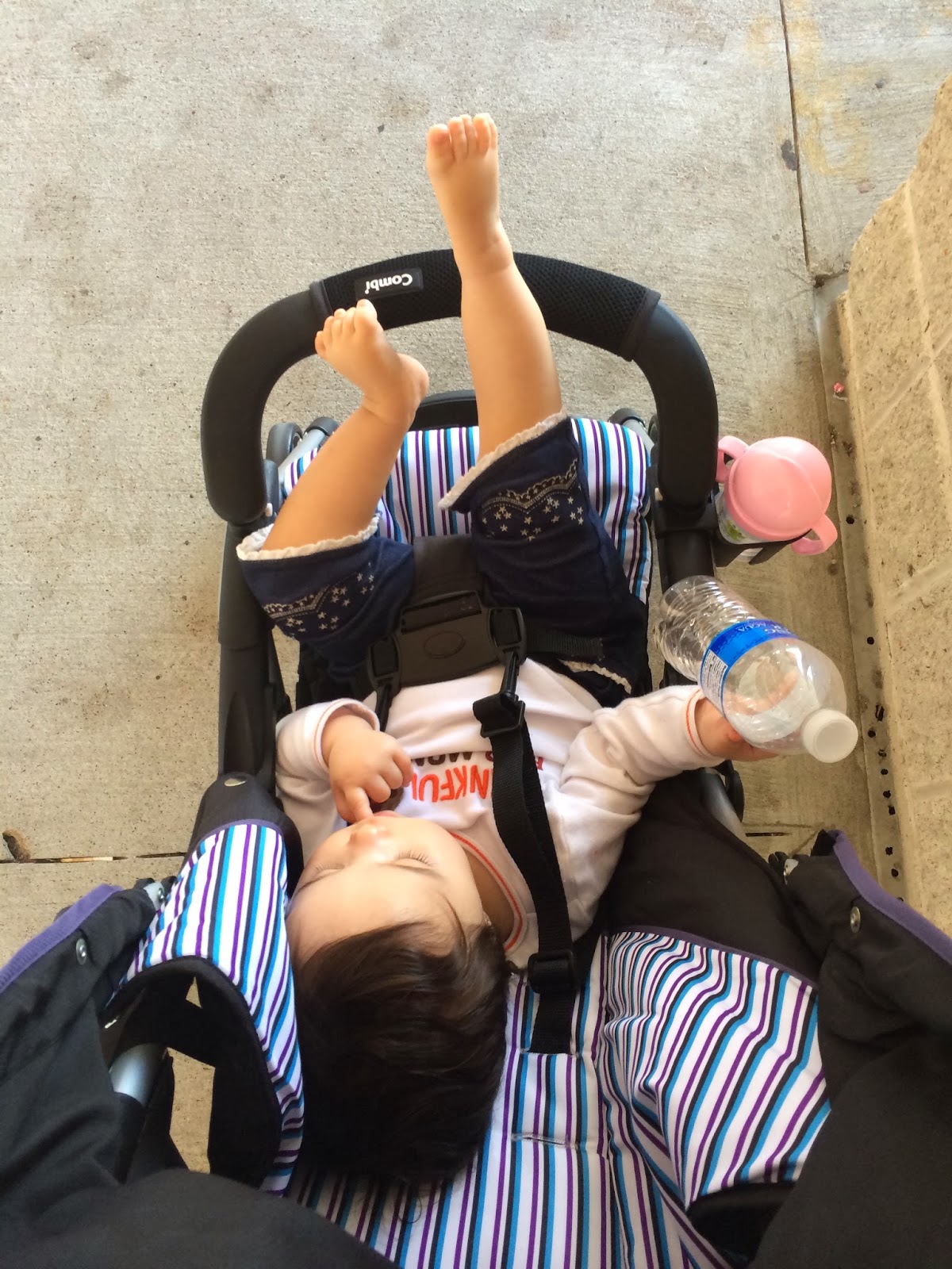坐推車也很愛翹腳, 有時候兩隻一起翹, 感覺很囂張的嬰兒...