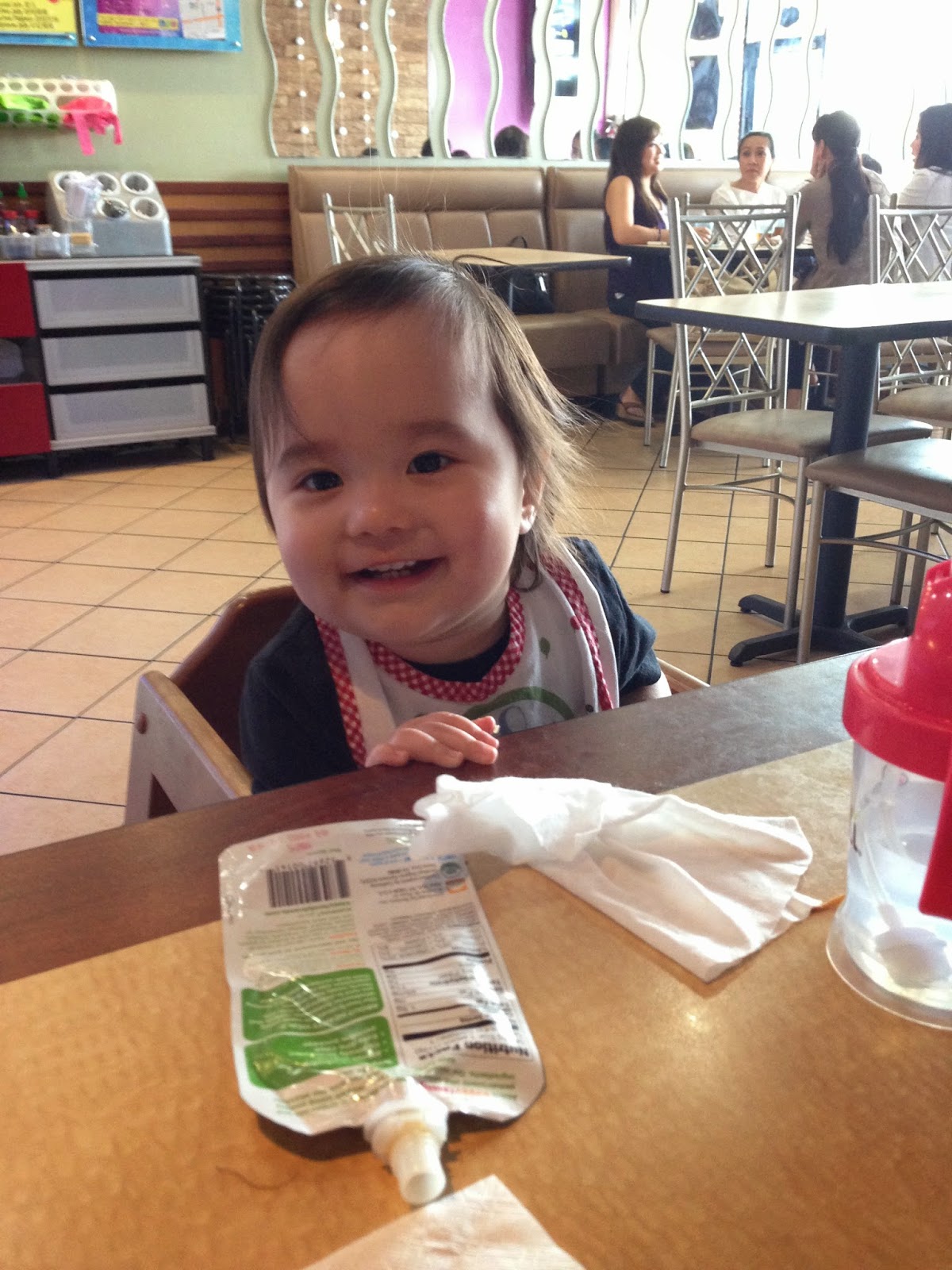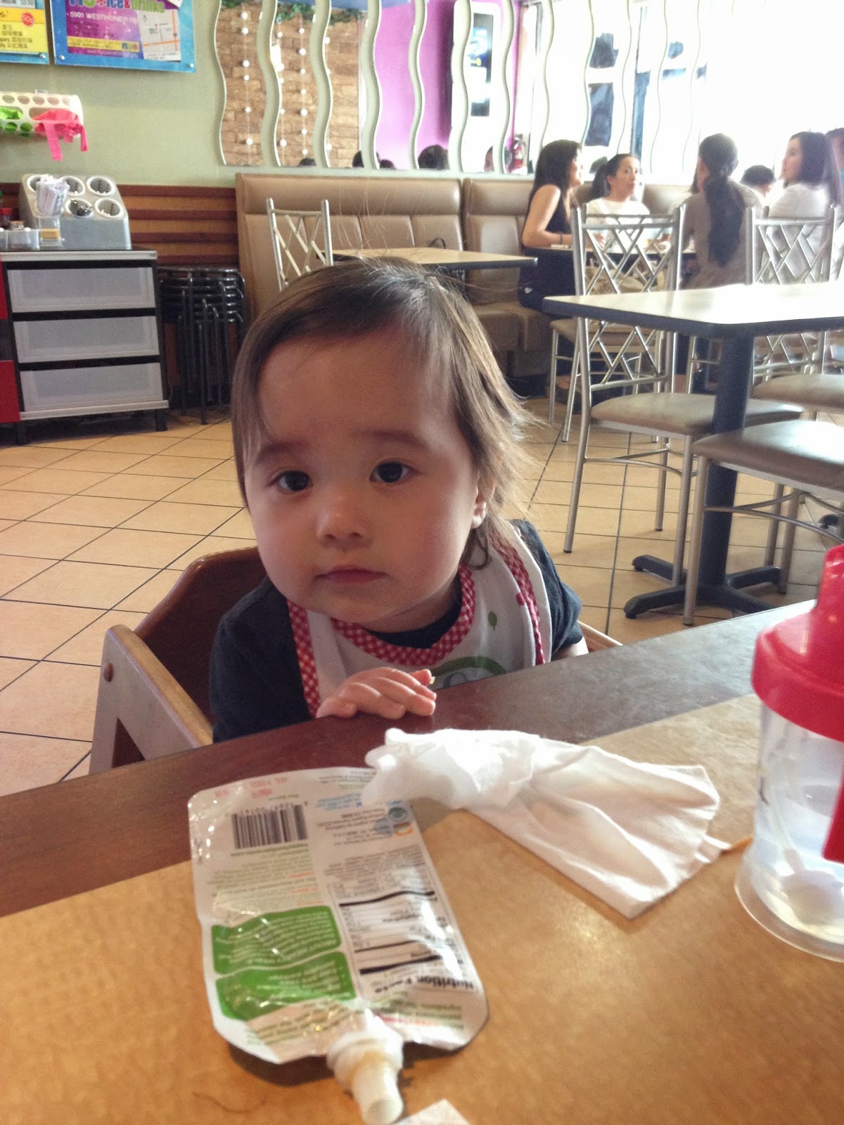 阿秋一開始沒有甚麼食慾, 不知道是不是因為早餐還在飽, 給她拉麵都只拿來玩, 結果最後我們都吃完了, 阿秋才猛的開始吃, 我也才能餵她些滷肉飯。