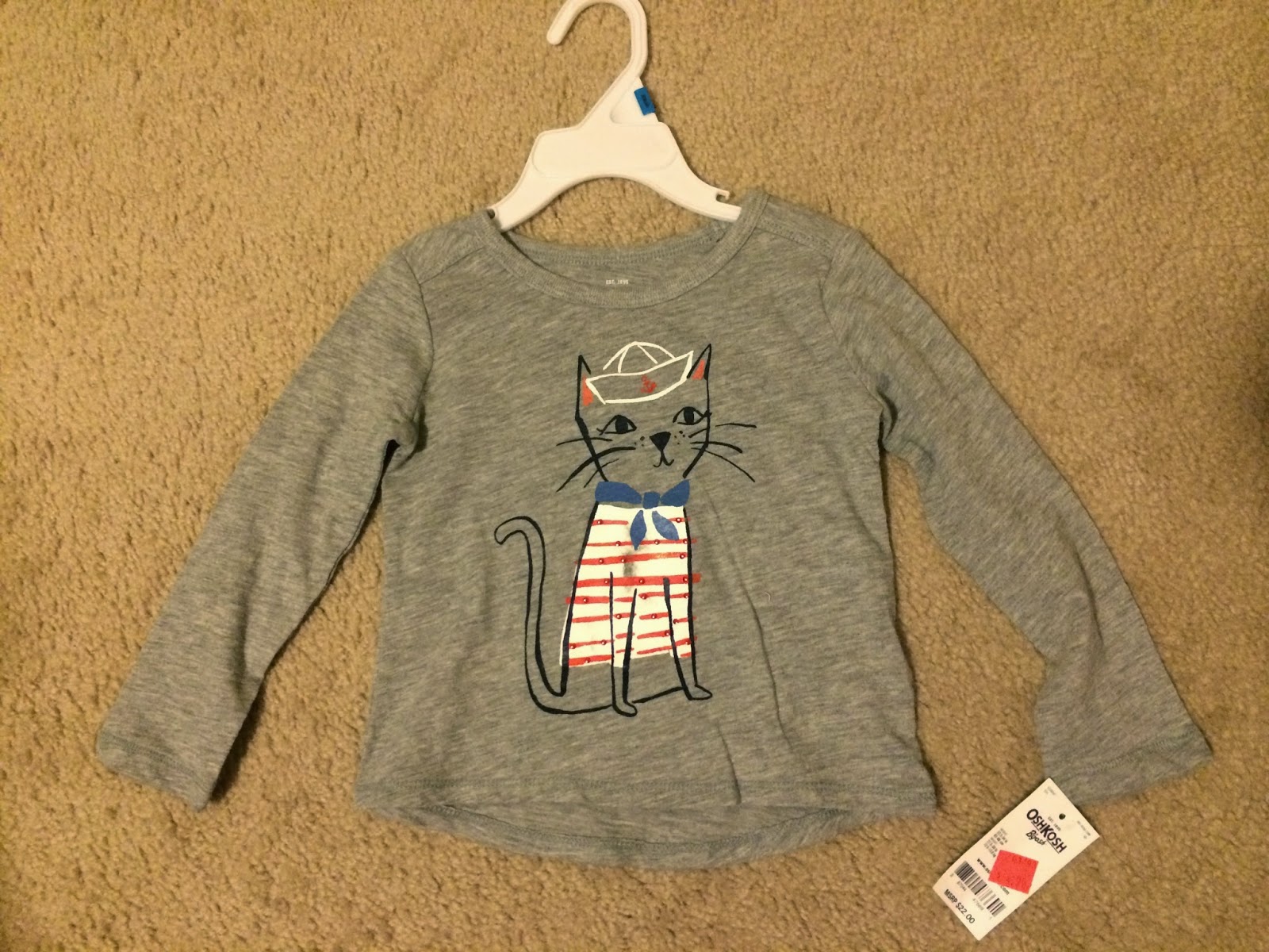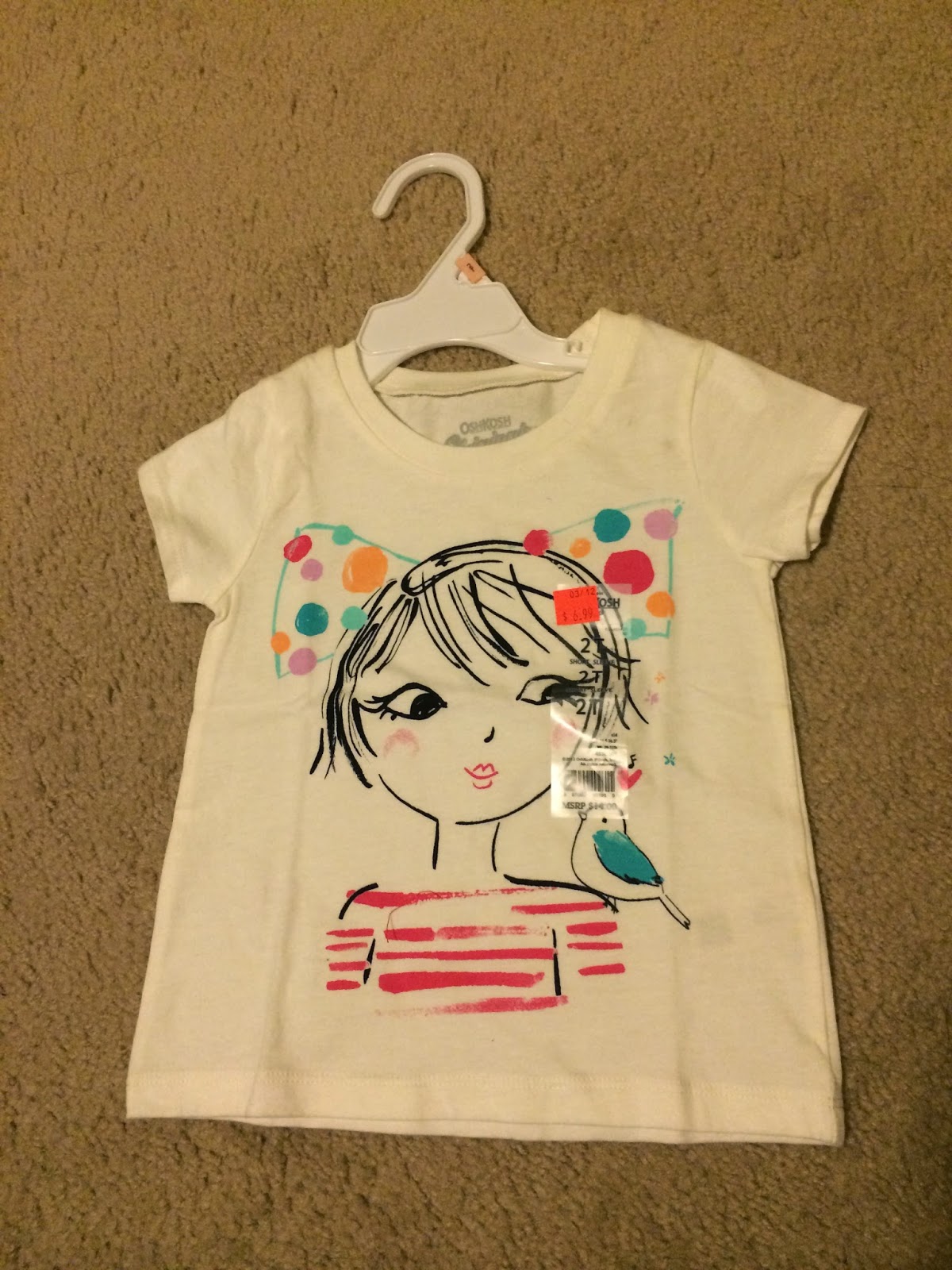 下面五件在Oshkosh買的, 總共$27, 因為最近阿秋換衣服越來越頻繁, 加上大部分的衣服都比較厚, 所以挑幾件比較薄的。