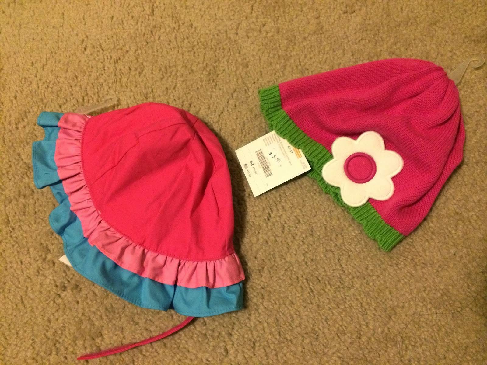 Gymboree的帽子, 右邊$6的毛帽, 左邊是3T的遮陽帽$13