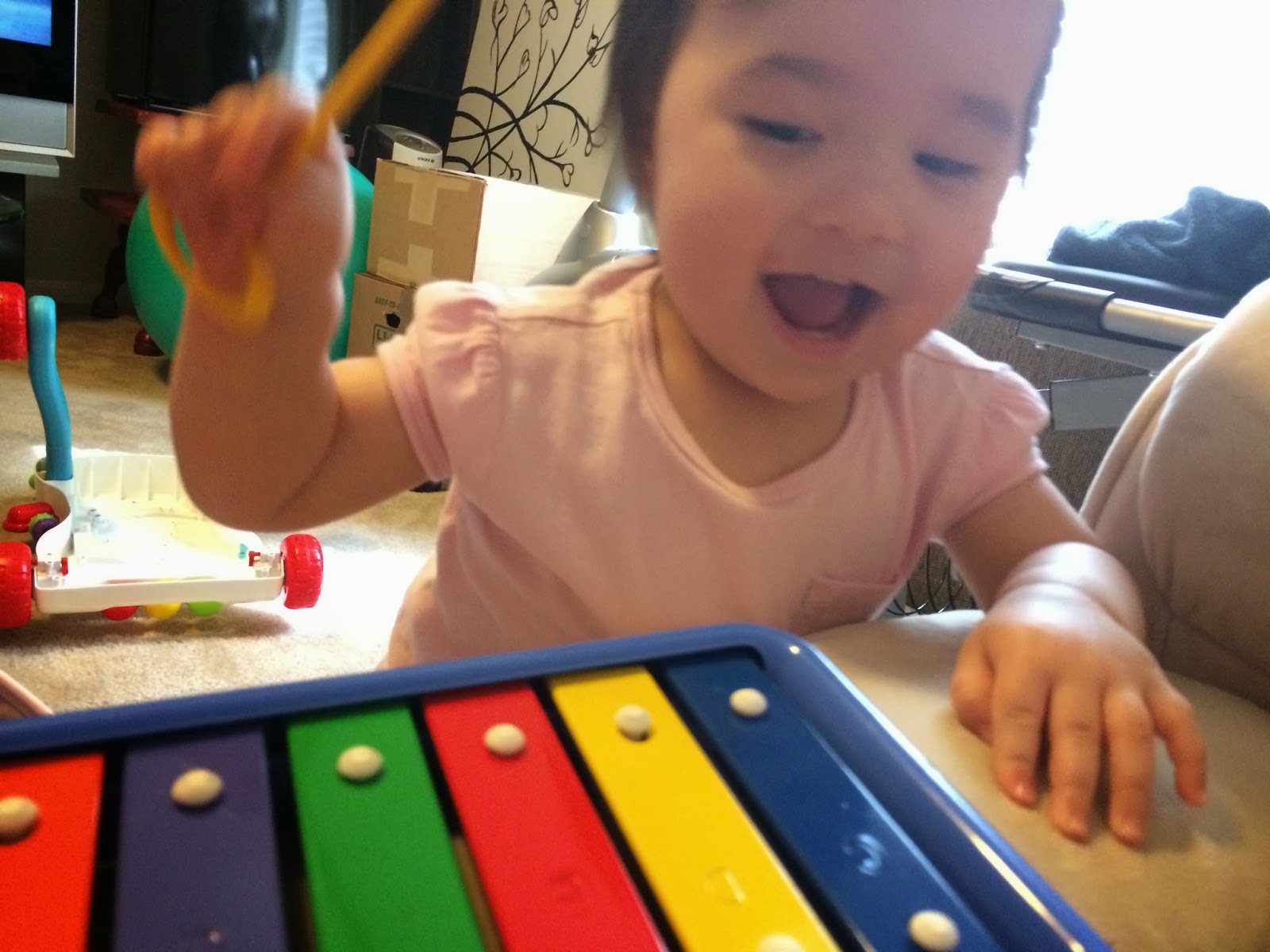 雖然家裡一大堆紙箱, 今天照出來的照片卻感覺好像在遊樂園?! 爬上爬下, 還有鐵琴可以打。